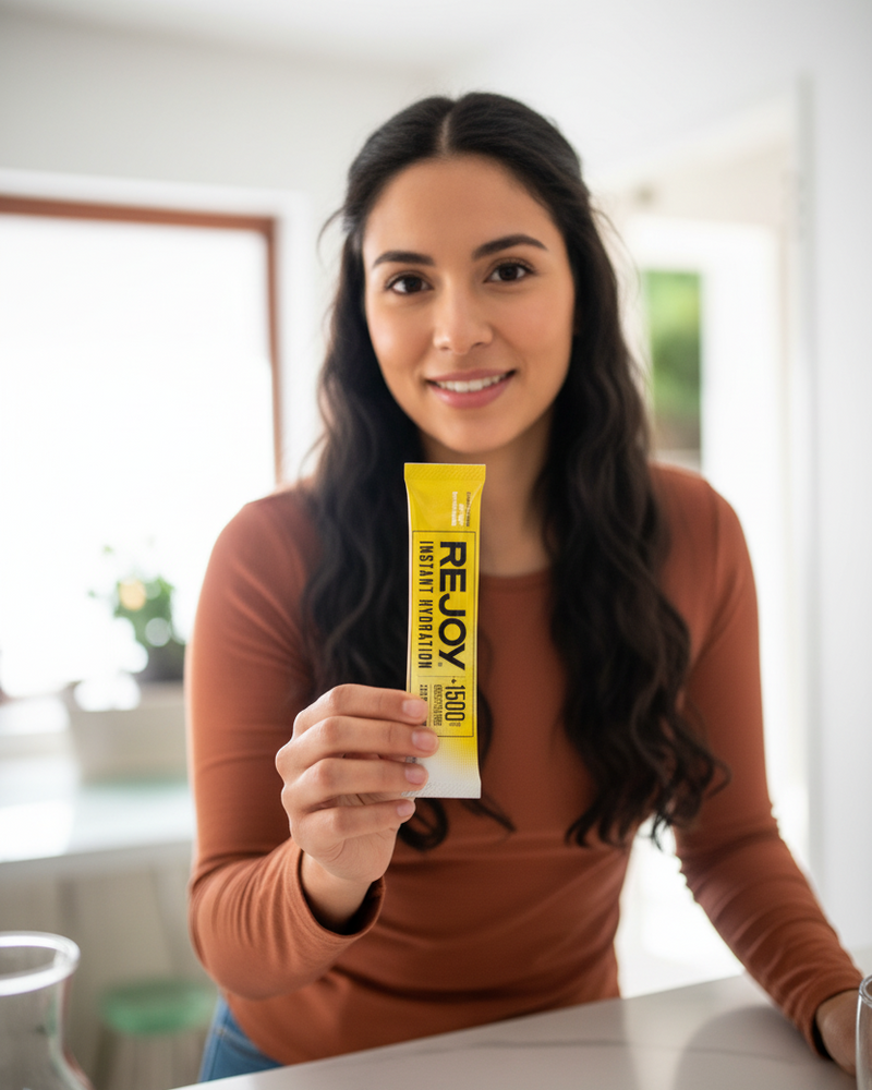 REJOY es hidratación limpia: sin azúcares, saborizantes ni rellenos. Compatible con estilos de vida estresantes, ayuno, entrenamiento e ideal para resacas y excesos.